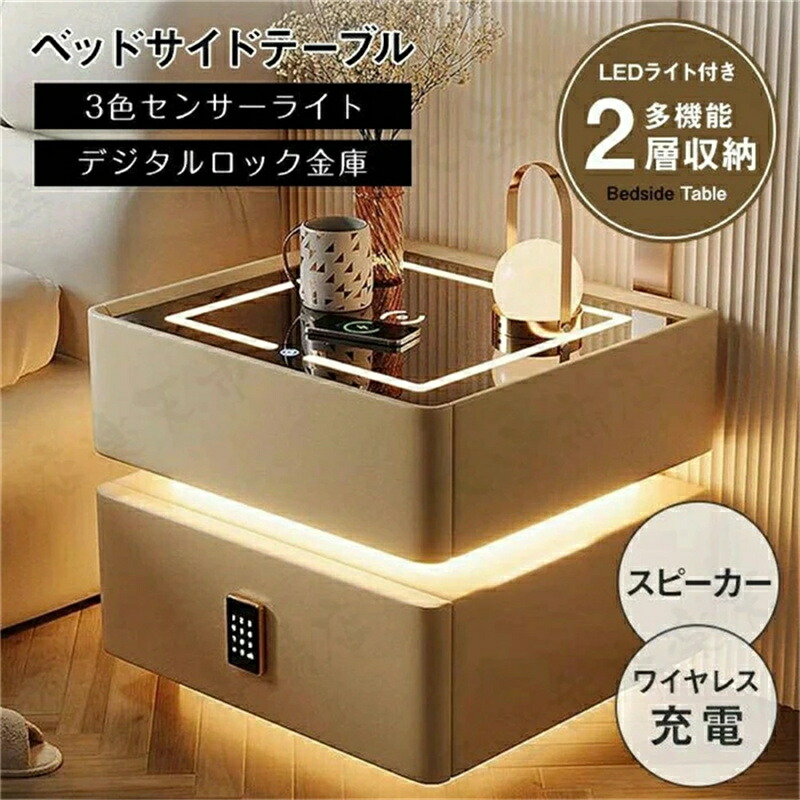 多機能の智能ベッドサイドテーブル テクノロジーが生活を変える ナイトテーブル モダン レトロ サイドチェストテーブル 収納ラック インテリア モダン おしゃれ