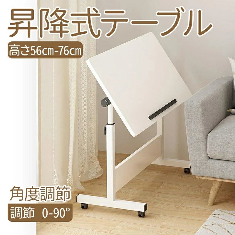 昇降式サイドテーブル 折りたたみ 高さ56cm-76cm調節 0-90°角度調節インテリア 寝具 収納 テーブル サイドテーブル ナイトテーブル