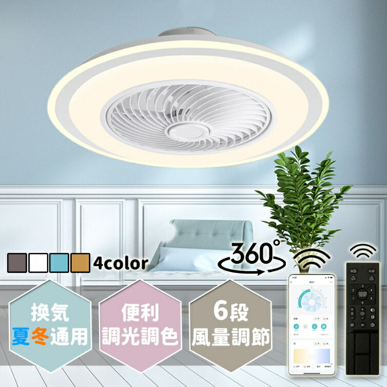 シーリングファンライト 調色調光 LED フインテリア 寝具 収納 ライト 照明器具 天井照明 シーリングファン