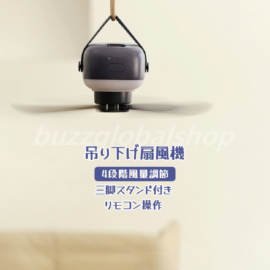 風量4段階 2 4 6 8時間の定時 5枚羽根 シーリングファン ハンディ ファン 天井 かや ベッド キャンプ 子供部屋 寝室 和室 給電 静音 リモコン付き 2色展開
