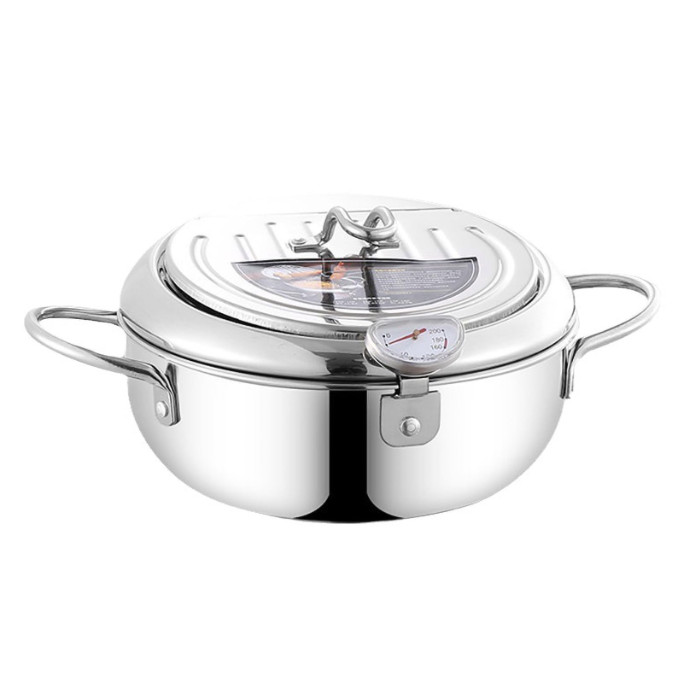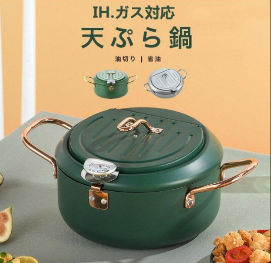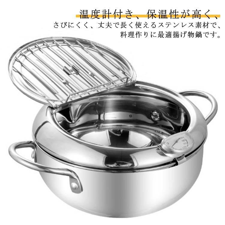 天ぷら鍋、天ぷら鍋蓋温度計、ストレーナーラック付き揚げ鍋、家庭用和風天ぷらフライヤーポット、らフライパンげ鍋 天ぷら鍋 天ぷ 家庭用お手入れ簡単、天ぷらステンレス製天