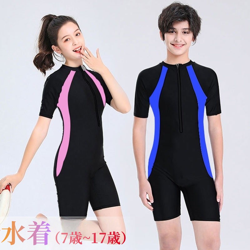スクール水着 女の子 男の子 キッズ 水着 ラッシュガード 小学生 中学生 7歳~17歳 一体型 前開き スイミング スクール 競泳 水泳 授業用 着脱簡単 プール 練習用 水遊び 海