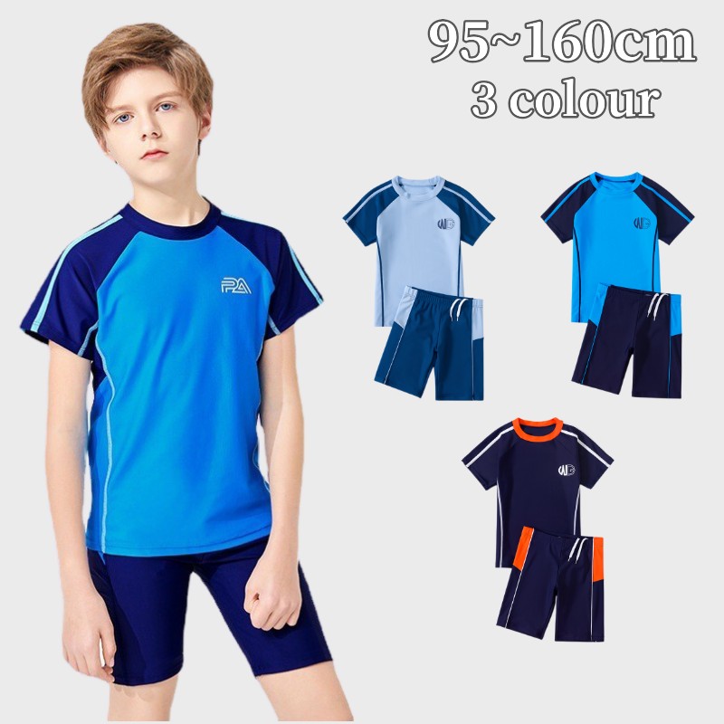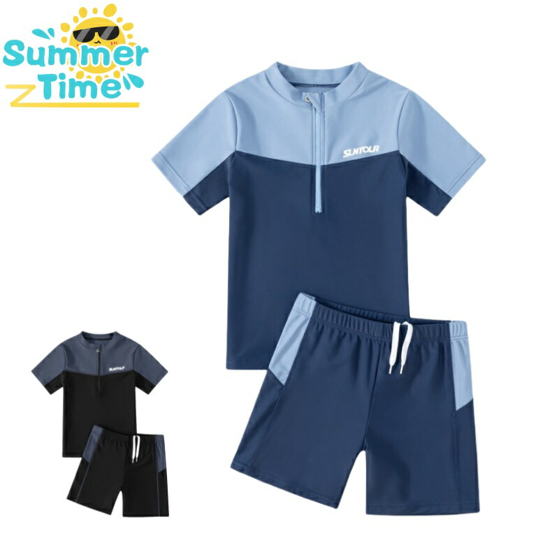 スクール水着 男の子 小学生 キッズ 水着 セパレート 競技水着 中学生 幼稚園 保育園 半袖 2点セット スイミング 着脱簡単 日焼け防止 温泉 プール 練習用 水遊び 海 ビーチ