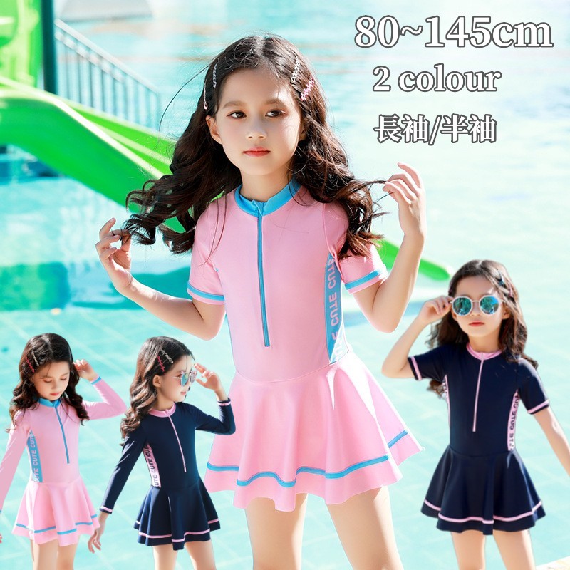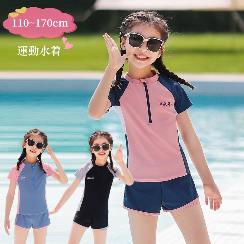 スクール水着 女の子 小学生 キッズ 水着 セパレート 競技水着 中学生 幼稚園 保育園 長袖 半袖 2点セット 可愛い スイミング スクール 着脱簡単 前開き 日焼け防止 温泉 プール 練習