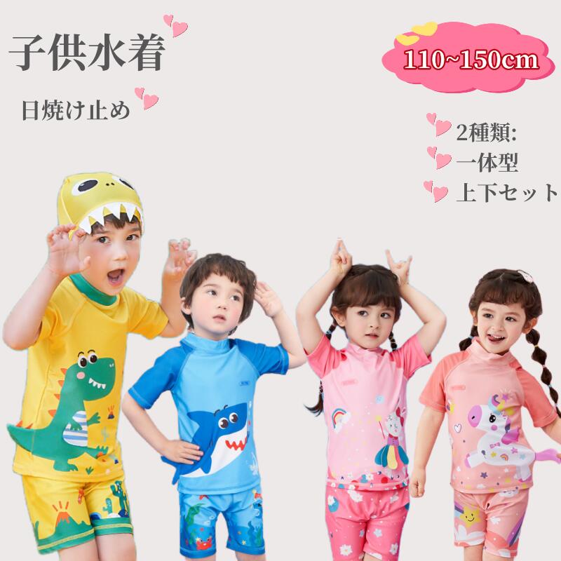 子供 水着 ラッシュガード 男の子 キャップつき 2点セット UVカット 恐竜 怪獣 ロンパース 女の子 ジュニア 赤ちゃん ベビース スイムウェア 海プール 紫外線対策 かわいい