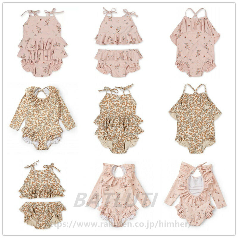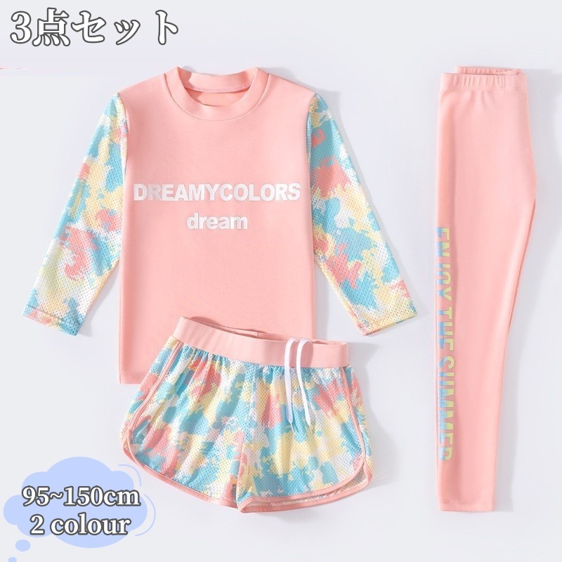 【パットあり】キッズ水着 こども水着 女の子水着 ラッシュガード 女の子 セパレート 3点セット ガールズ 水遊び プール 海 スイムウェア おしゃれ 海 夏 旅行 水着 女の子 ビーチ