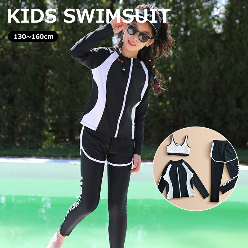 子供 水着 女の子 セパレート 上下3点セット ラッシュガード キッズ スクール水着 おしゃれ みずぎ 長袖 スイミング 高校生 小学校授業 女の プール