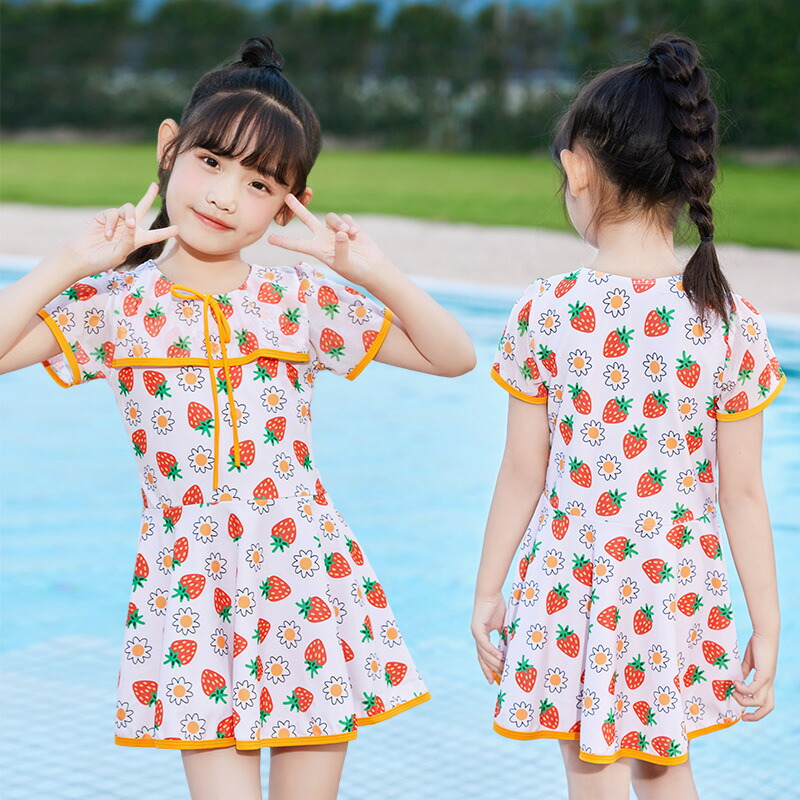 2点セット 子供水着 キッズ水着 ワンピース水着 女の子 イチゴ かわいい こども ジュニア セパレート型 スイムウエア スイミング ショートパンツ付き 小学生 中学生 高校生子 幼稚園