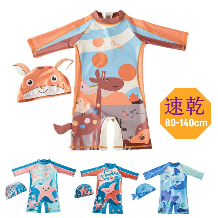 キッズ 水着 男の子 長袖 小学生 セット ベビー 90 スイムキャップ付き スイミング 水泳 着脱簡単 プール 幼児 幼稚園 保育園 水遊び 海 ビーチ 砂遊び 100 1