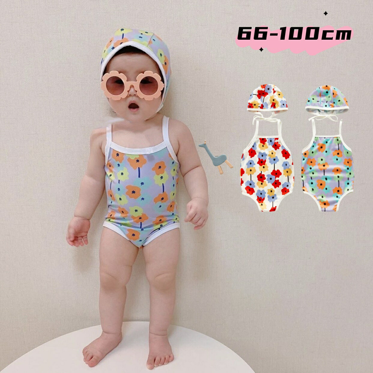 ベビー 水着 女の子 80 90 スイムキャップ付き 一体型 おしゃれ かわいい スイムウェア 幼児 幼稚園 保育園 可愛い 海 ビーチ プール 砂遊び 66 73 100