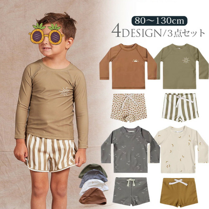 3点セット キッズ ベビー 水着 長袖 ラッシュガード 夏 男の子セパレート 水着 上下セット 子ども 子供 動きやすい 水着 ジュニア 水遊び プール