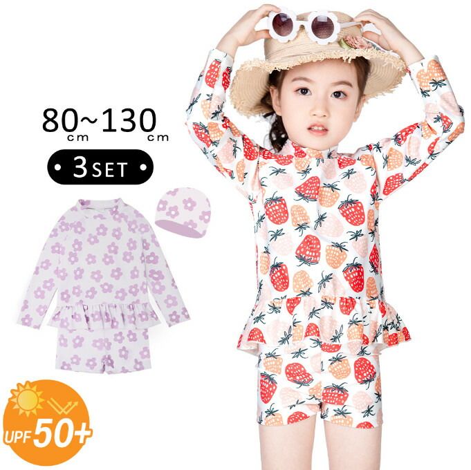 イチゴ柄は子どもの特権☆プラス裾フリルでスイートにキメちゃう スイムウェア 子供水着 ガールズ セットアップ 可愛い 女児 女子 水遊び 海水浴 着替えやすい 水陸両用