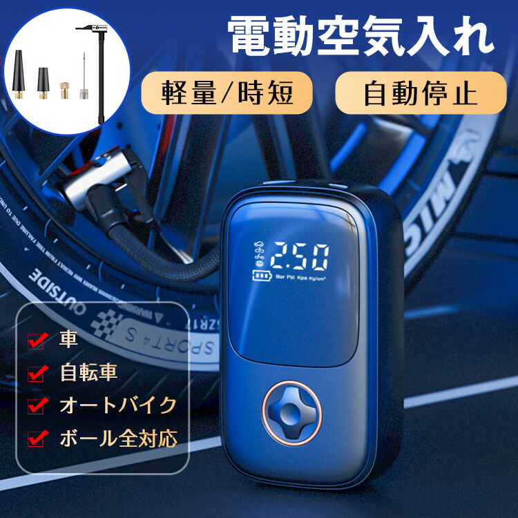 コンパクト 小型 簡単 かんたん 操作 気圧単位 選べる 設定空気圧で自動停止 万能 ギフト対応 プレゼント