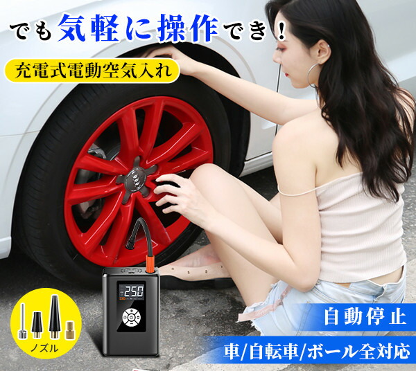 自動車 タイヤ 空気入れ バイク用 電動空気入れ ホースコネクター 自動停止 エアーポンプ 2000 充電式 小型 軽量 携帯便利 電動ポンプ プレゼント