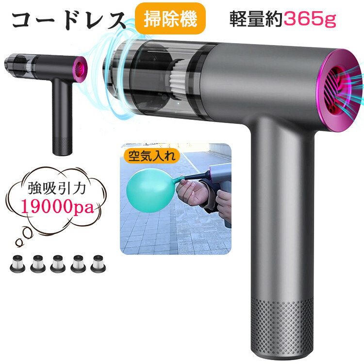 コードレス掃除機 充電 365軽量 高い吸引力 送風 車 掃除機 ハンディクリーナー コンパクト 隙間 掃除 6個フィルター 0.35容積