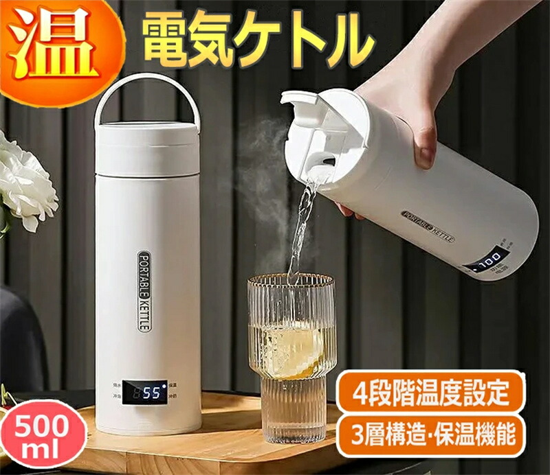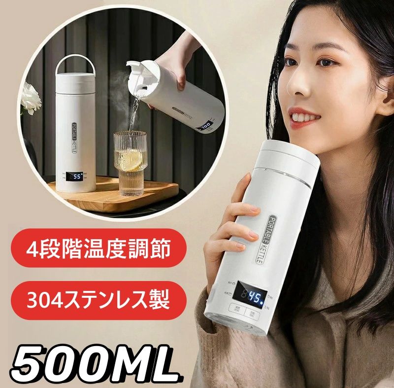 ポータブル電気ケトル 電気水筒 電気ケトル 電気ポット 500 小型 ミニ 電気ボトル ボトル 魔法瓶ポット ポータブルケトル ワンプッシュ オープン