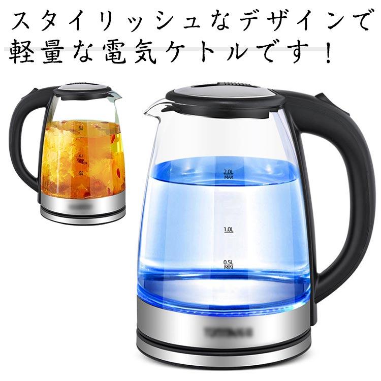 耐熱200℃ 電気ケトル ガラス ケトル おしゃれ ガラス製 耐熱強家電 キッチン家電 電気ケトル