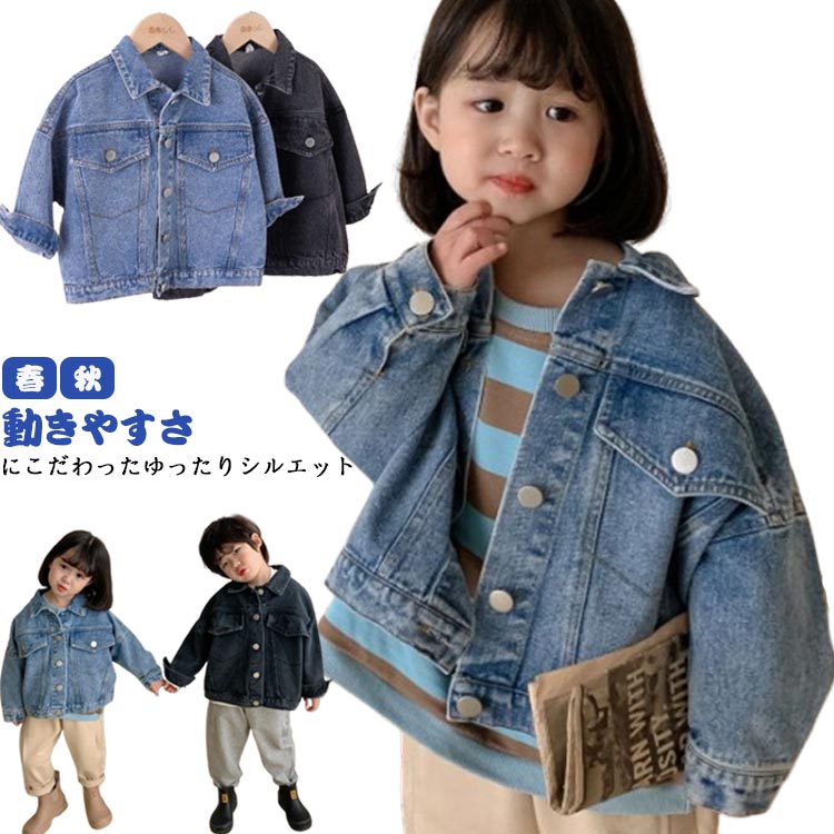 デニムジャケット キッズ 子供 ジャケット コート 春 秋 長袖 シンプル ボーイズ ガールズ コーデ ゆったり おしゃれ アウター トップス