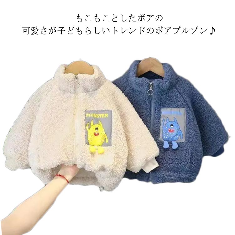 子ども服 ボア 羽織り キッズ こども 男の子 女の子 ベビー ブルゾン トップス 長袖 ボアアウター フードなし ハイネック 保温 もこもこ トレンド カジュアル あたたかい