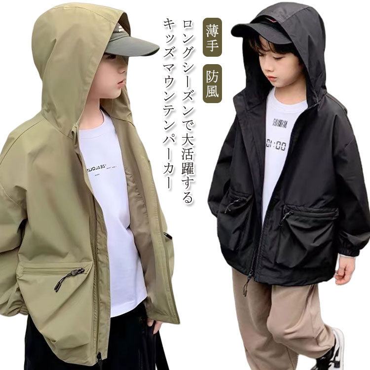 キッズ マウンテンパーカー ジャケット ウィンドブレーカー ブルゾン 秋春アウター ジュニア 男の子 女の子 薄手 子どもパーカー 子供服 女児 羽織り ジュニア服 おしゃれ 可愛い トップス こども