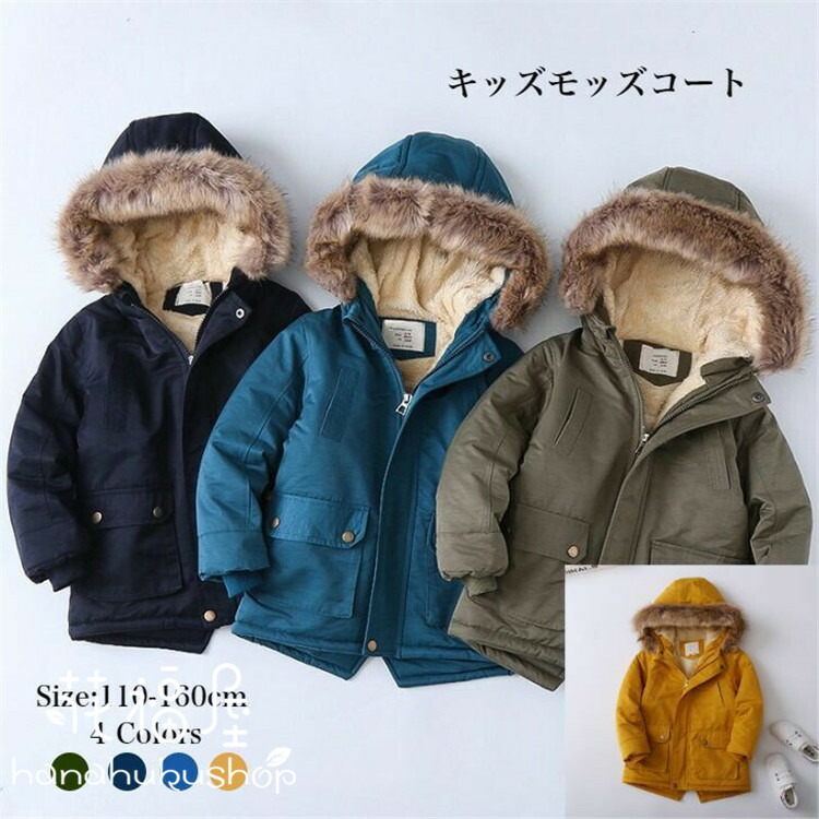 キッズモッズコート こども 子供服 男の子 女の子 秋冬 コート 裏ボア ジャケット キッズミリタリージャケット フード付 キッズ 秋冬 防寒 ボアコート ボア コート 中綿