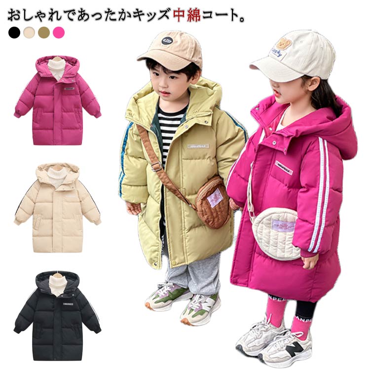 子供 中綿 コート キッズ ロングコート ユニセックス キッズ 子供服 通園 通学 フード付き 防寒 暖かい 軽量 プレゼント