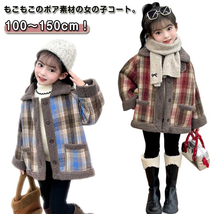 キッズ ボアコート 暖かい あったか 裏ボアコート ジュニア アウター カジュア 防寒 冬 通園 通学 チェック柄