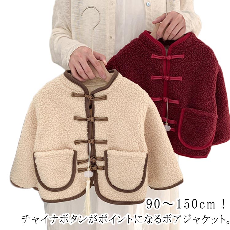 フードなし キッズ ボア コート チャイナーボタン 長袖 ポケット 秋 冬 保温 通園 通学 カジュアル 暖かい こども服