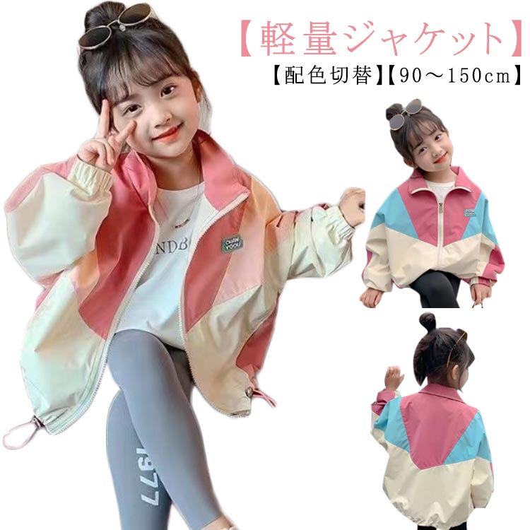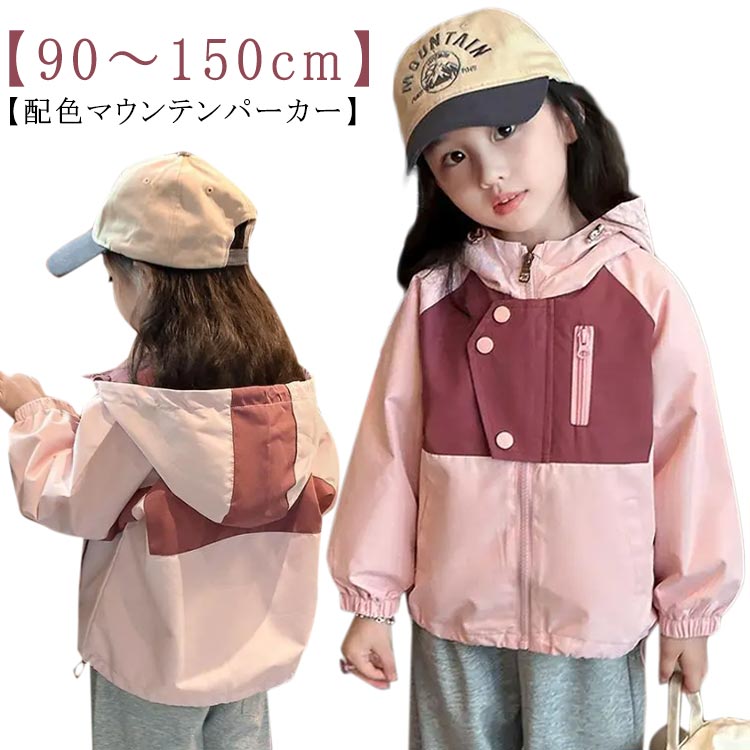 ウィンドブレーカー マウンテンパーカー キッズアウター 通学 配色 ジャケット 女の子 アウター かわいい フードなし