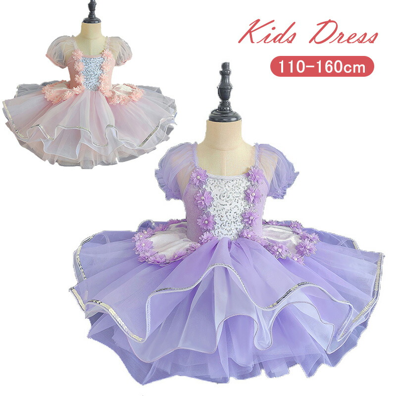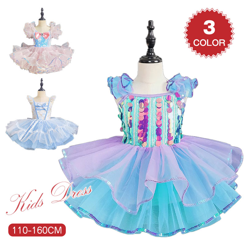 バレエ ワンピース 子供用 レオタード ダンス衣装 舞台衣装 新体操 スパンコール チュチュスカート キッズ ジュニア バレエ用品 子ども ダンスウェア お姫様 子供 レッスン 女の子 ドレス