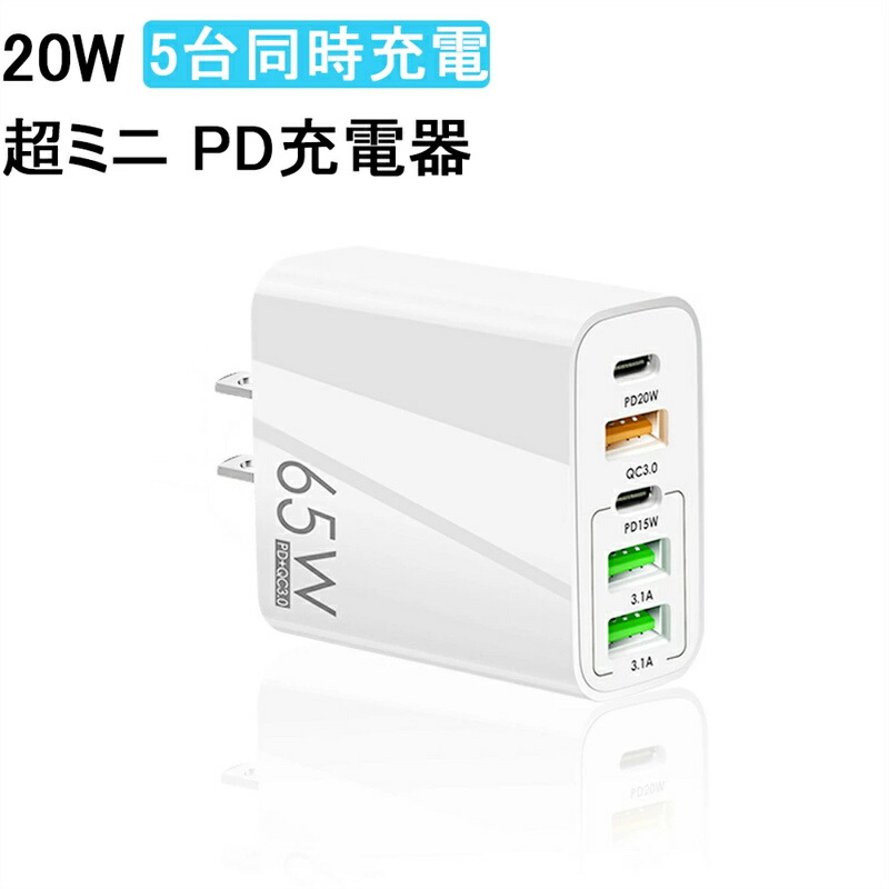 [PD20W対応 USB C&QC3.0 PD15W 3.1A USB*2&5台同時充電] PD充電器 Type C 超ミニ 急速充電器 5充電ポートusb コンセント 携帯電話 充電器 acアダプタ