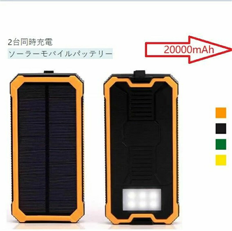 モバイルバッテリー ソーラーバッテリー 携帯充電器 20000 超大容量 ソーラーチャージャー ライト 2出力ポート 頑丈で 耐衝撃 認証済み