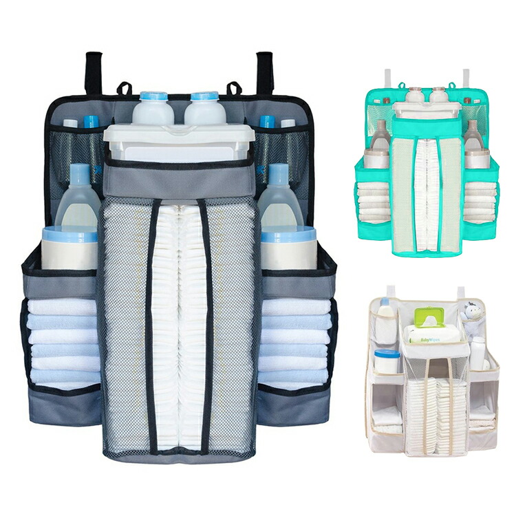 ベビーベッド収納 ベビーベッドサイド収納袋 おむつ収納袋 吊り袋 おもちゃ収納袋 片付け 小物入れ 大容量 多機能 ベビー用品 子育て 出産祝い ベビーベッドサイド収納